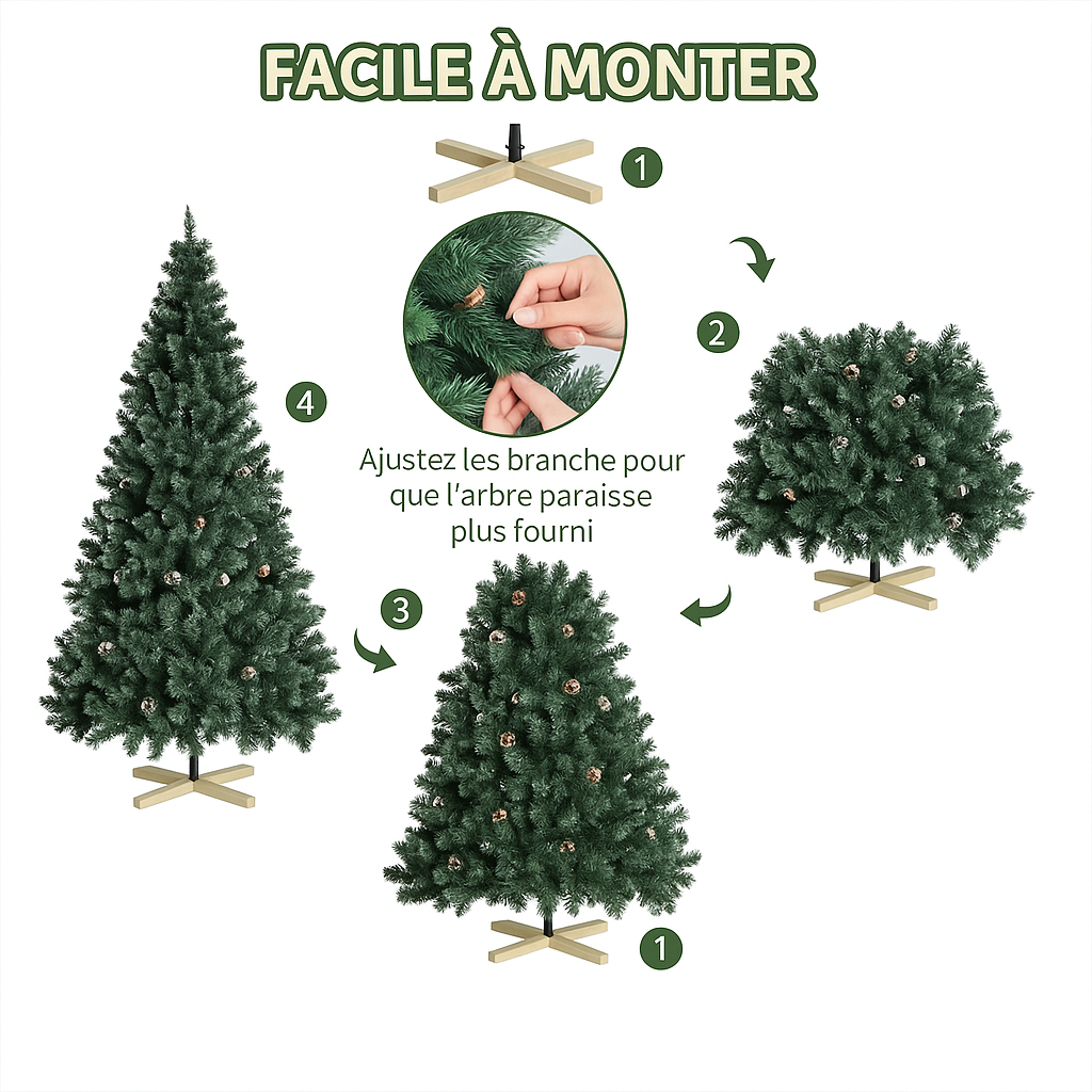 Aspect réaliste et luxueux : Branches denses et coloris naturels pour imiter un véritable sapin.