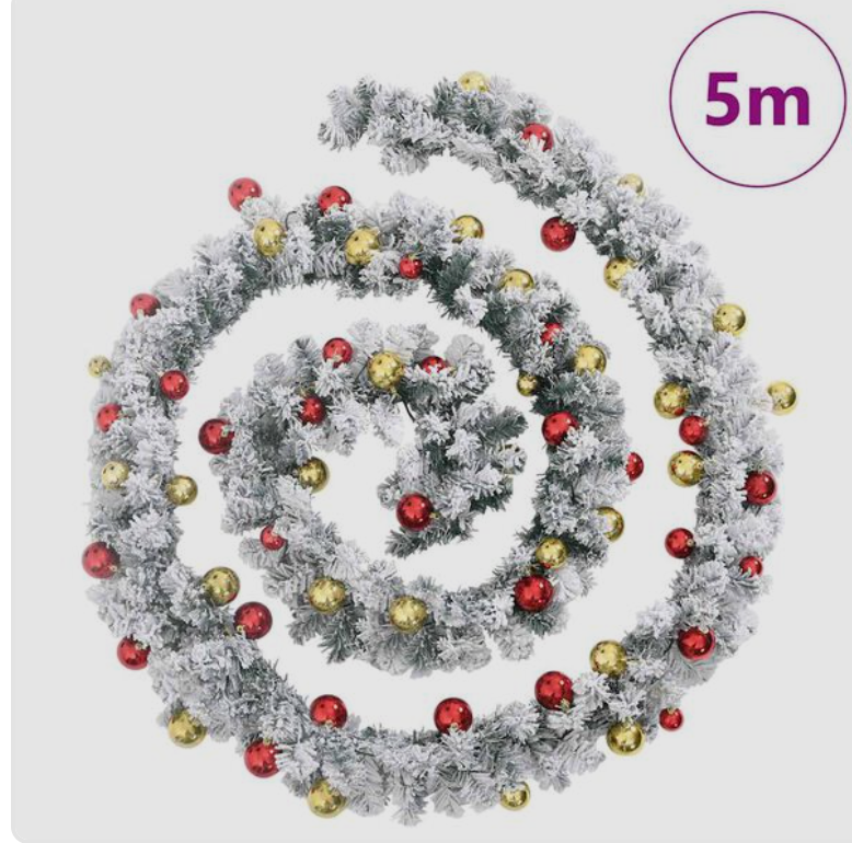 Apportez l’esprit des fêtes chez vous avec la guirlande de Noël artificielle, disponible en plusieurs versions et longueurs (5 m, 10 m, 20 m). Fabriquée en PVC vert résistant, elle est décorée de neige artificielle pour un rendu hivernal naturel. Certaines variantes incluent des boules rouges et dorées ainsi qu’un éclairage LED USB (5 V, adaptateur non inclus).